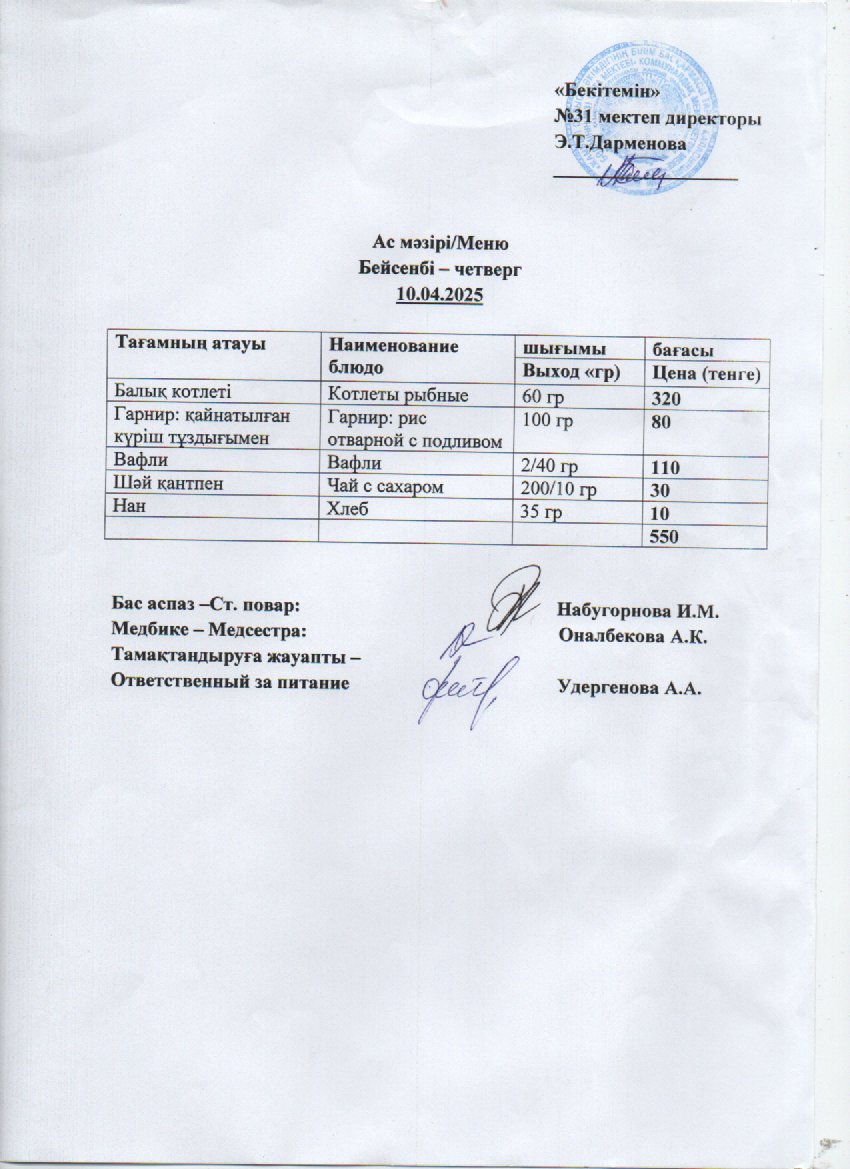 Ас мәзірі » СШ №31
