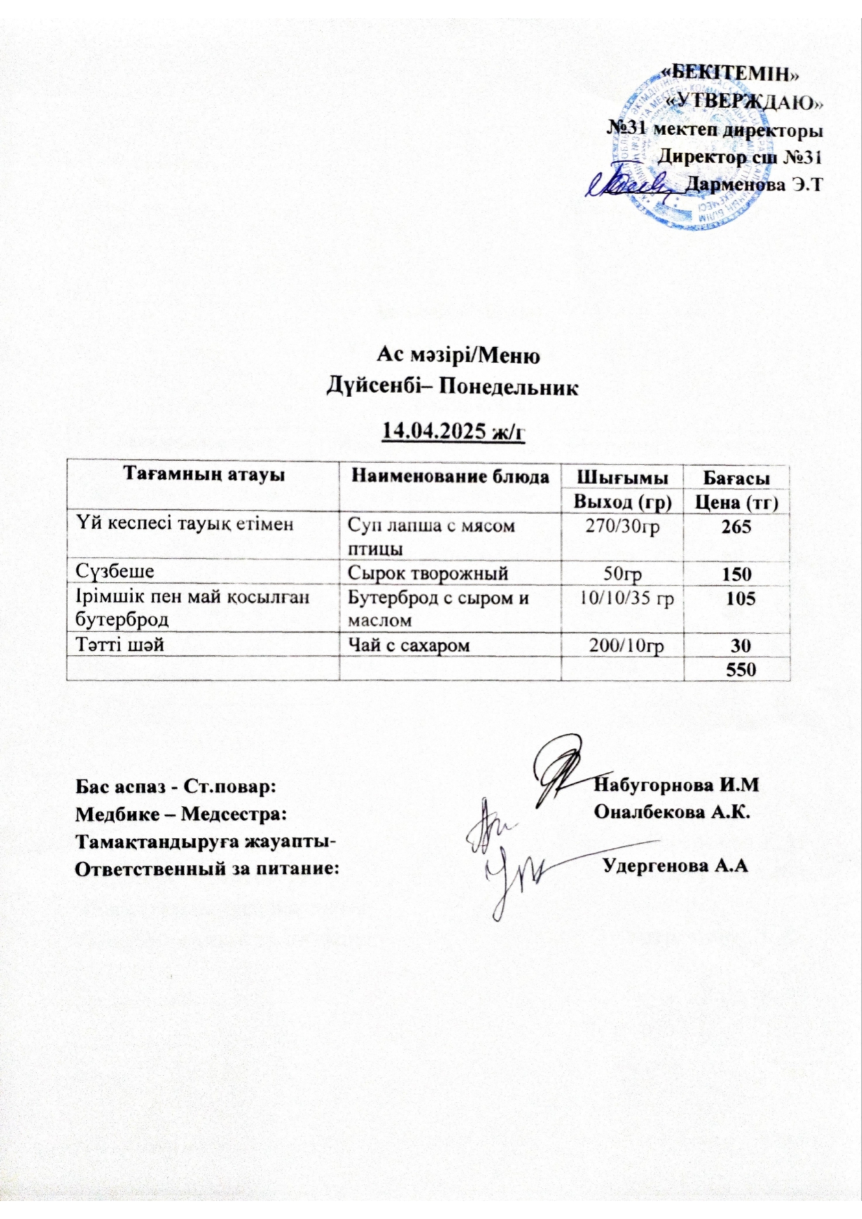 Ас мәзірі » СШ №31
