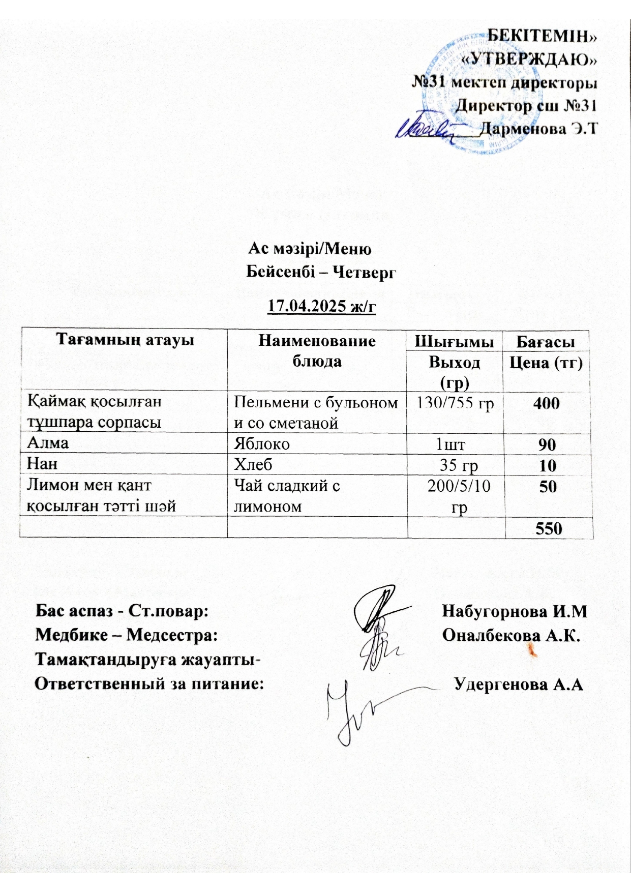 Ас мәзірі » СШ №31