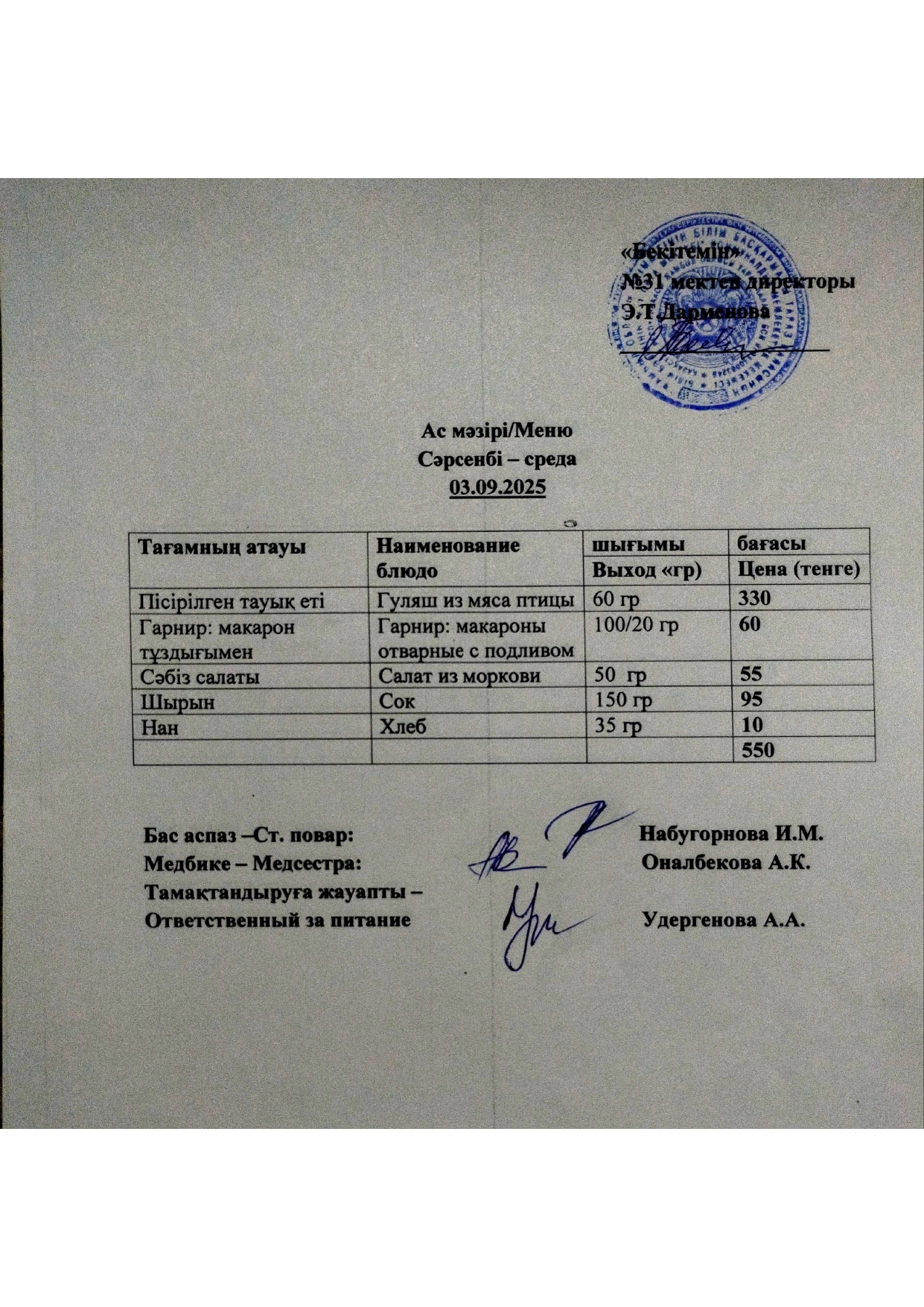 Ас мәзірі » СШ №31
