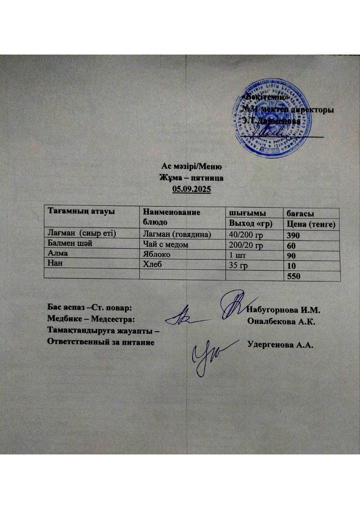 Ас мәзірі » СШ №31