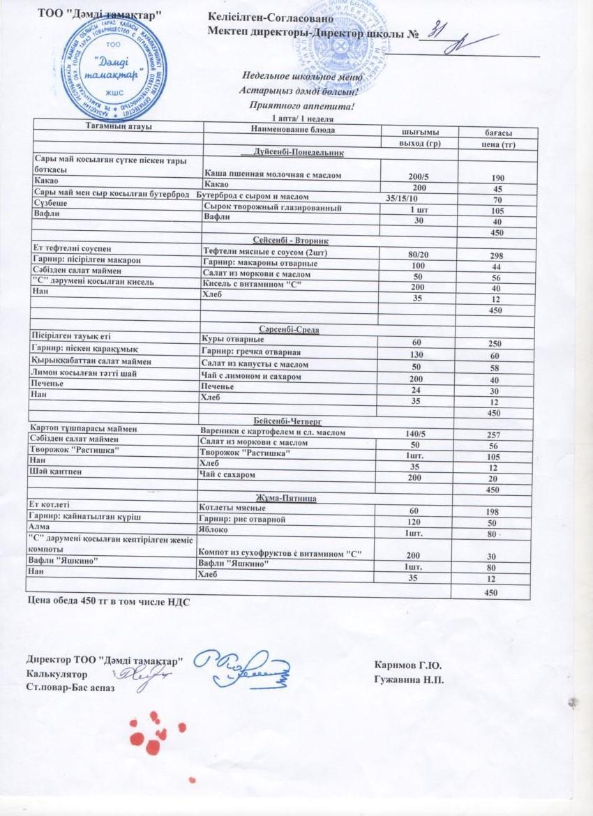 Меню на месяц 1 неделя » СШ №31