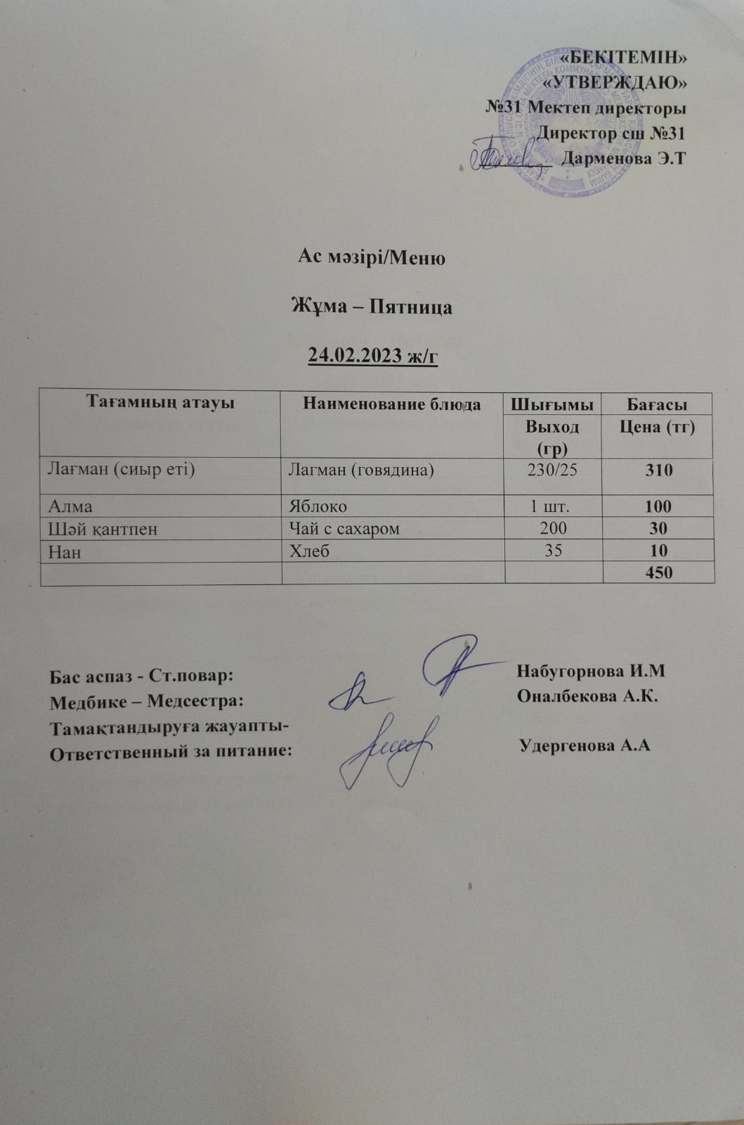 Ас мәзірі » СШ №31