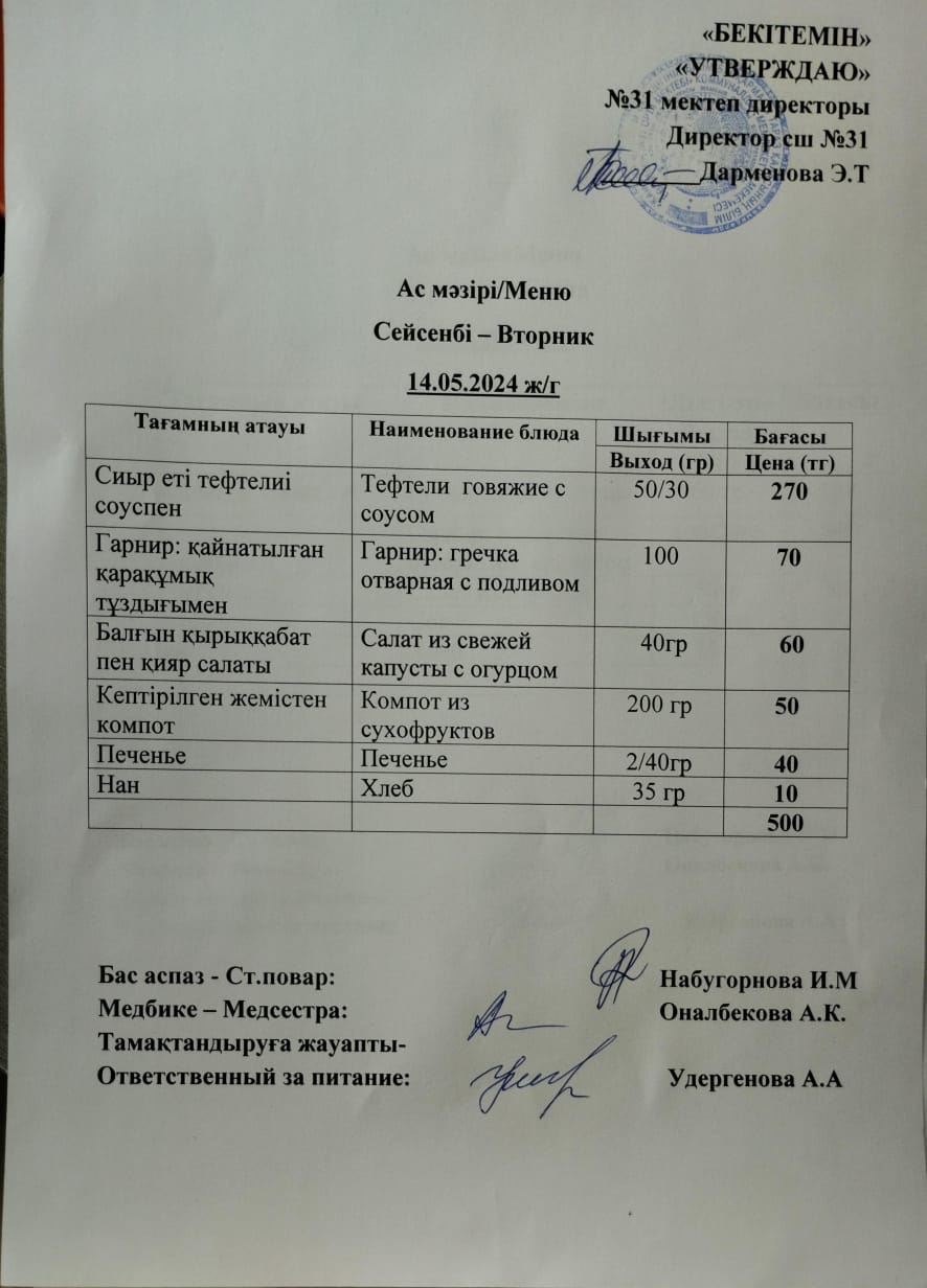 Ас мәзірі » СШ №31