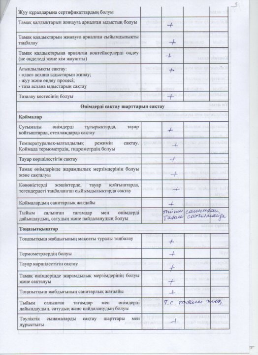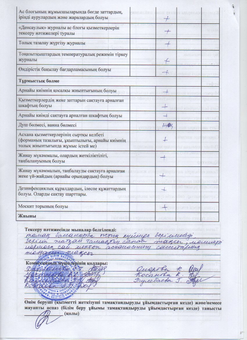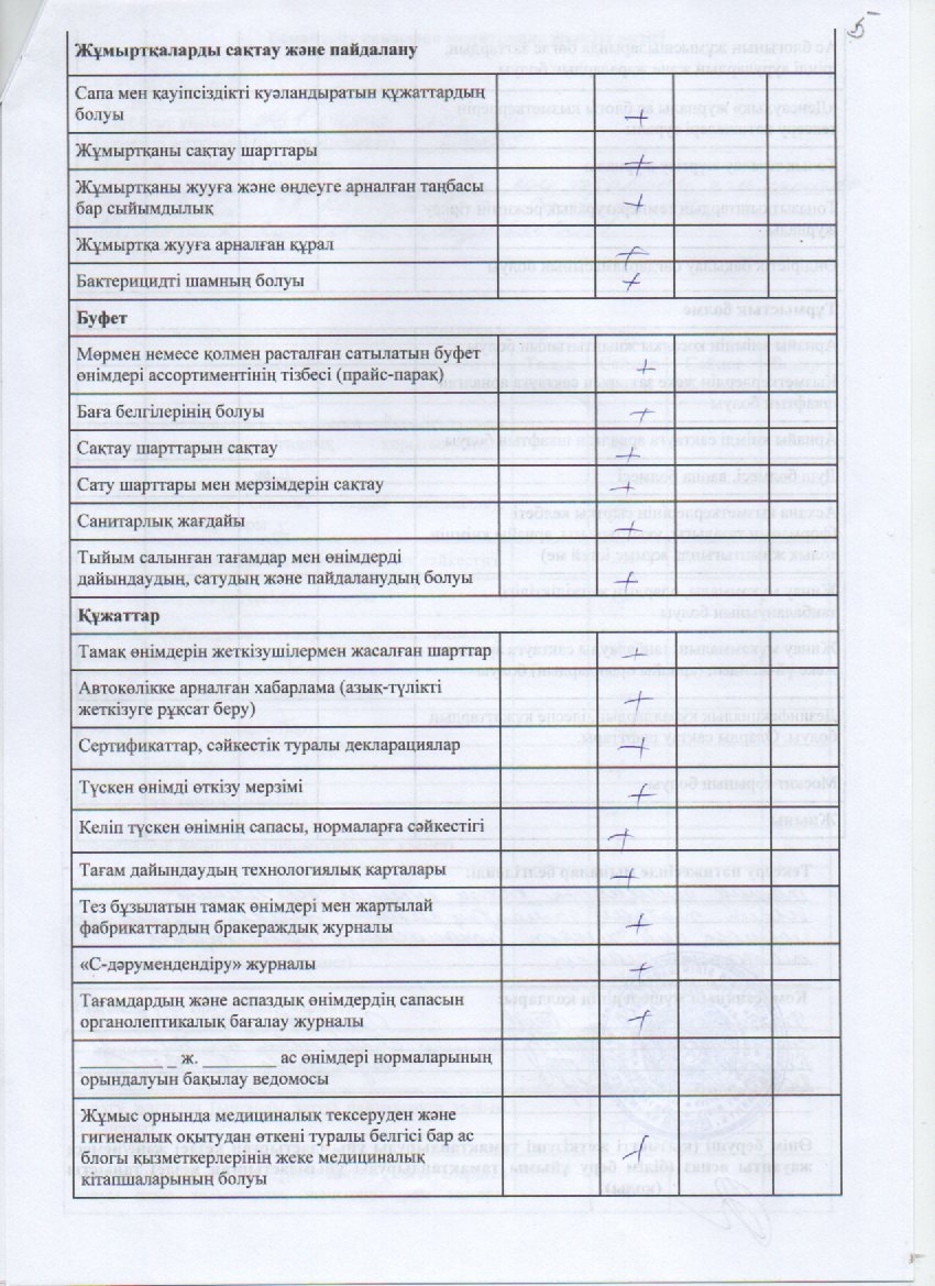 Бракераж комиссиясының тексеру актісі » СШ №31