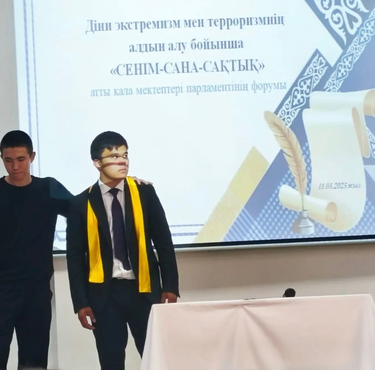 #Біртұтас_ тәрбиеЖамбыл облысы білім басқармасы,Тараз қаласы білім бөлімінің ұйымдастыруымен діни экстремизм мен терроризмнің алдын алу бойынша "СЕНІМ-САНА-САҚТЫҚ" атты қала мектептері парламентінің форумы өтті. Форумға тәлімгер Тоқтасынова С.Қ мен мектеп парламентінің мүшесі Сайфуллаев Шахисмаил қатысып келді.
