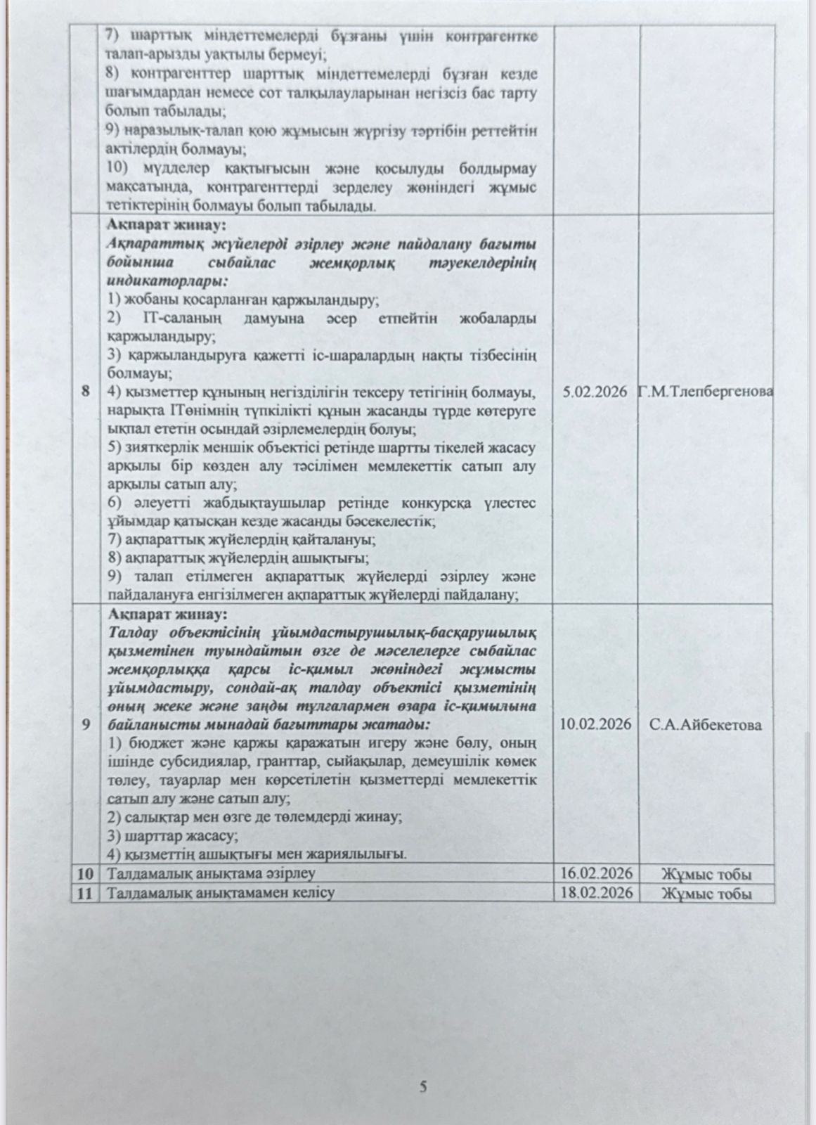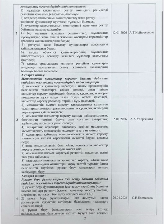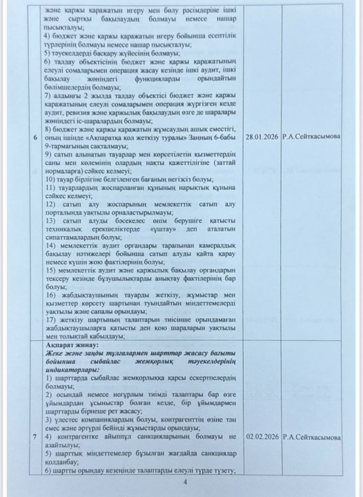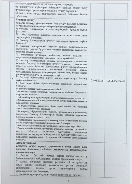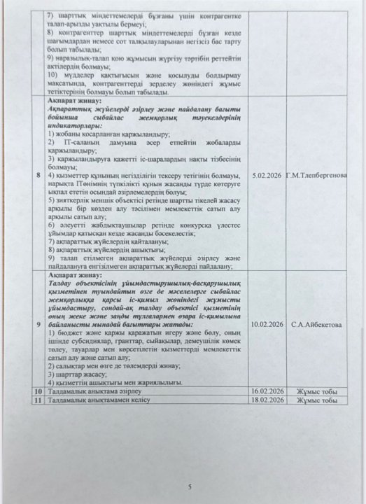 05 январь 2026 0 1 2 3 4 5 Сыбайлас жемқорлық тәуекелдеріне ішкі талдау жүргізу жөнііндегі жұмыс жоспары