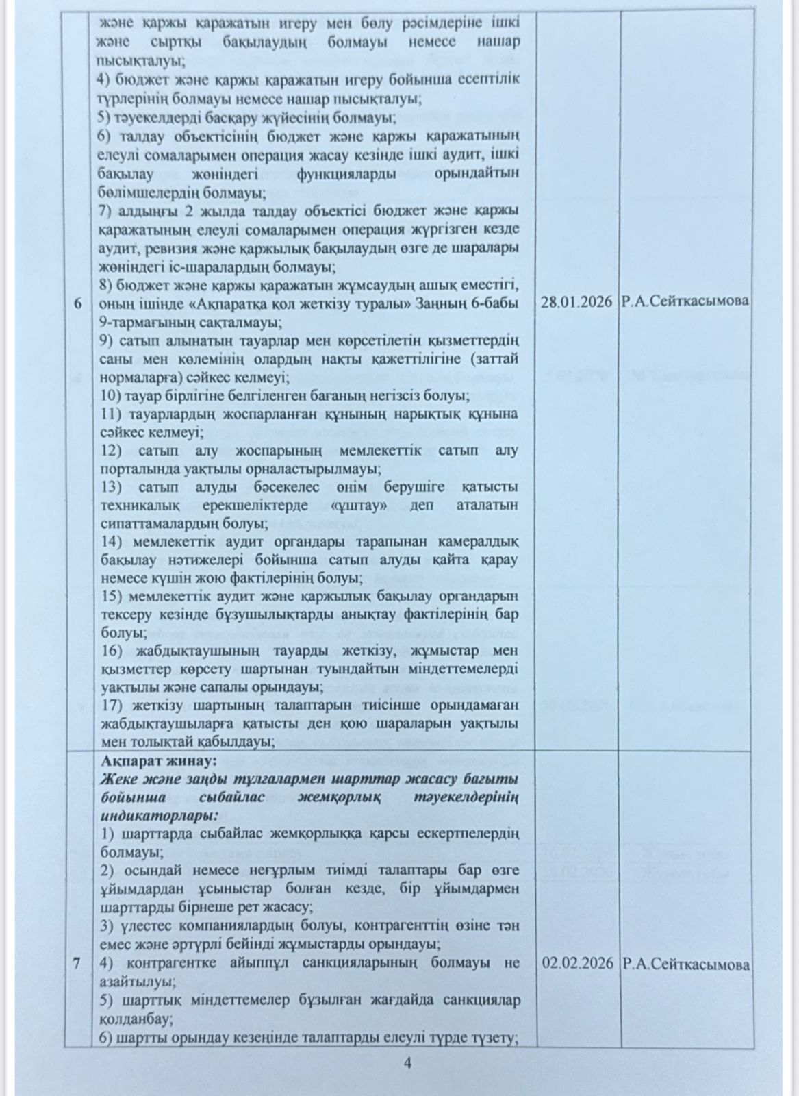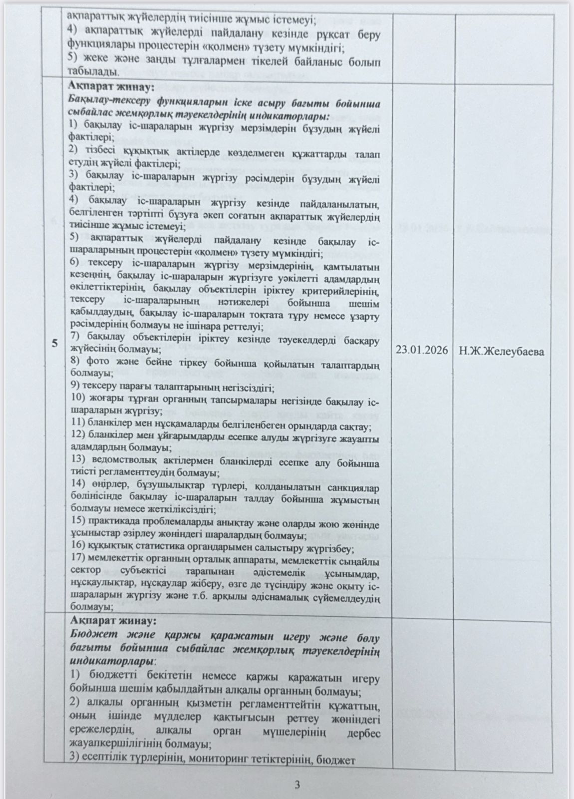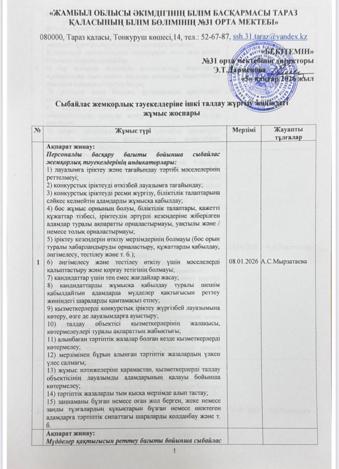 05 январь 2026 0 1 2 3 4 5 Сыбайлас жемқорлық тәуекелдеріне ішкі талдау жүргізу жөнііндегі жұмыс жоспары