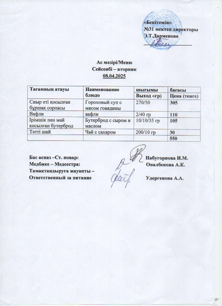 Ас мәзірі » СШ №31