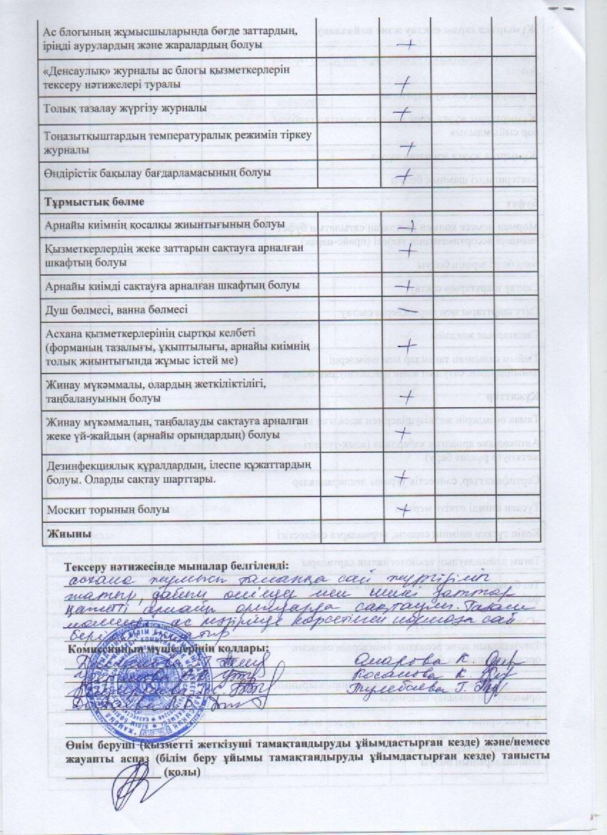 Бракераж комиссиясы тексеру актісі » СШ №31