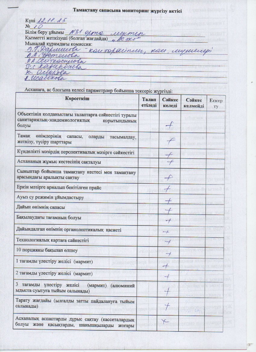 Бракераж комиссиясы актісі » СШ №31